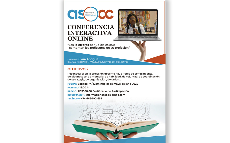 La Asociación Organizativa para la Cultura y el Conocimiento (ASOCC) es un organismo dedicado a promover conocimientos intelectuales y culturales a través de la instrucción, investigación y ejecución de proyectos fomentado en el análisis crítico del conocimiento y del saber natural.La dirección de ASOCC está ejecutada por Clara Antigua: Coordinadora y ponente en congresos internacionales y simposios científicos.