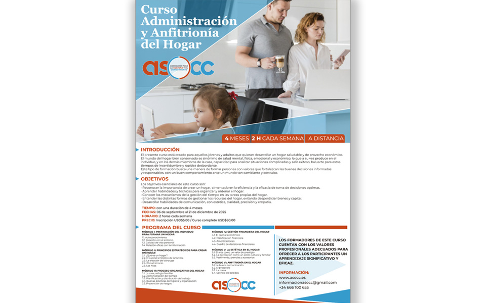 La Asociación Organizativa para la Cultura y el Conocimiento (ASOCC) es un organismo dedicado a promover conocimientos intelectuales y culturales a través de la instrucción, investigación y ejecución de proyectos fomentado en el análisis crítico del conocimiento y del saber natural.La dirección de ASOCC está ejecutada por Clara Antigua: Coordinadora y ponente en congresos internacionales y simposios científicos.